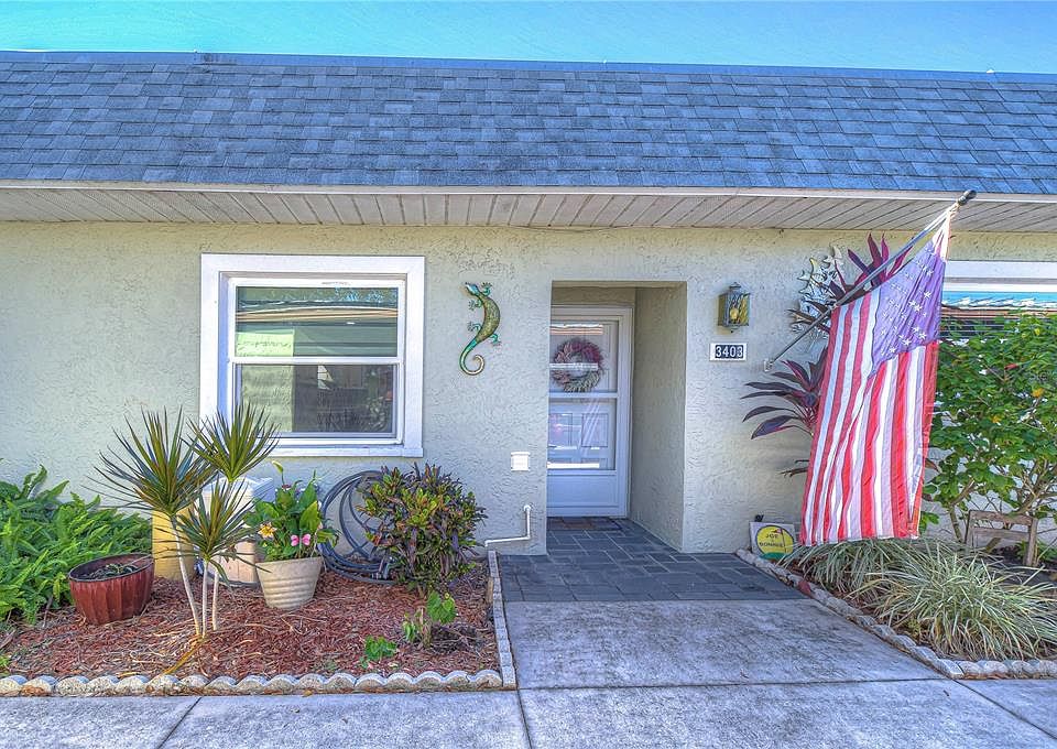 Price correction! Gorgeous 2/2 villa has been completely updated. Beautiful new kitchen. New hurricane impact windows/doors, front door has a storm door, water softener, tankless water heater, new master carpet, new blinds throughout and vinyl flooring. The all new kitchen has a breakfast bar, soft close drawers, lazy susan, pull out drawers, disposal, stainless steel appliances and window corner nook seating area. Both bathrooms have new toilets. Master has a walk in closet, desk area and all new bath including a new shower door. Back room is perfect for an extra TV/reading or hobby room. Washer and dryer are inside. The back lanai is all new concrete and privacy provided by surrounding palms is the ideal grilling/eating outside area. No age restrictions! Pet friendly! Optional Social Dues, if buyer chooses to join, are $178/month and would include all the amenities: two pools, tennis, fitness center, pickleball, clubhouse, restaurant, full bar, full activities calendar, 2 premier 18 hole golf courses, pro shop, recreation/dining hall and bocce ball court. Walking distance to shopping, dining, bus line and hospital plus much more. Not in a flood zone. Two pets up to 35 pounds each allowed. HOA monthly fee includes: building insurance, 24 hour manned gate, internet, water, sewer, trash, cable with two boxes, pest control, exterior ground maintenance, paint, roof and escrow reserves fund. Only 35 minute drive to Tampa Airport. Only about 20 minutes from the gorgeous Fred Howard beach.