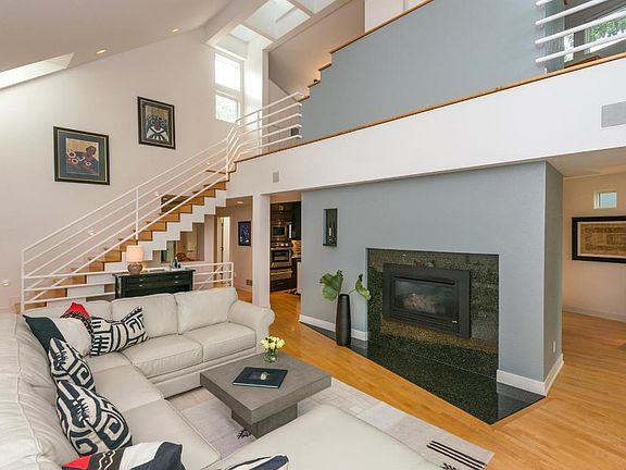 Spectacular architectural details in this 3Br contemporary. Soaring vaulted ceilings, skylights & dramatic window design provide a unique & private setting for this home. Enjoy sweeping views of Cedar lake from office loft, front deck & all communal spaces. Recently remodeled kitchen, baths, and lower level.