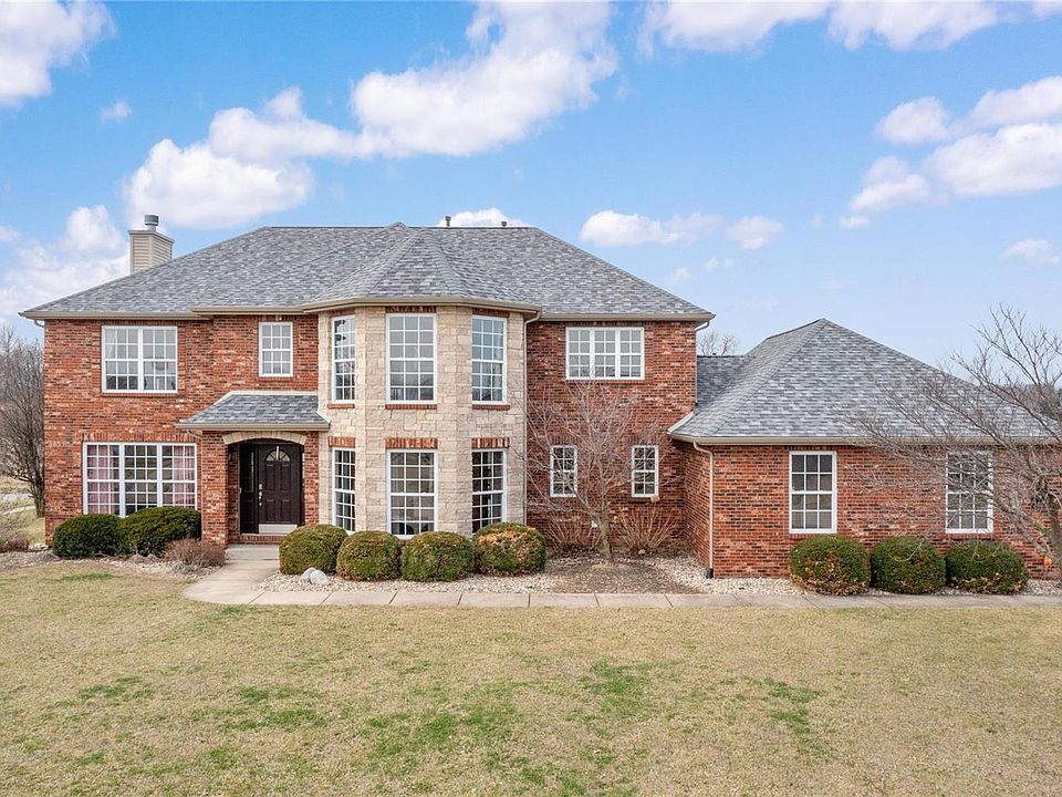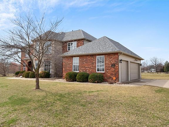 This stunning two story has more than a prime location in Woodfield Estates, it also has a three car side load garage, backing to an open field, 5 bedrooms, 5 baths, finished basement, and in Wolf Branch schools! Inside you'll find a two story foyer entry, hardwood floors, formal dining room, formal sitting room with built in bookcases,family room with woodburning fireplace, opening to a large eat in kitchen. The kitchen offers a breakfast nook,island, granite counter tops, walk in pantry and kitchen appliances to stay. A laundry room and half bath round out the main floor. Upstairs you'll find the primary bedroom with a luxury bath including a soaking tub, separate shower, water closet, and two vanities. Bedrooms 1 and 2 share a full jack and Jill bath and bedroom 4 has its own full bath.The finished basement has a living room, wet bar, full bath, bedroom 5, another bonus room, and storage room! Irrigation system and upstairs carpet new in 2021.Assumable VA loan possibility at 2.75%.