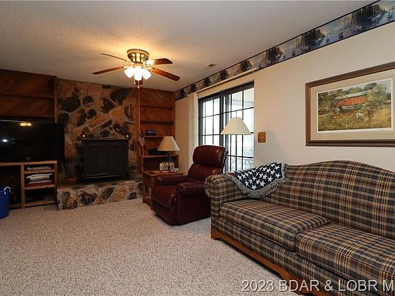 Outstanding Lakefront home in a very desirable area. This well maintained 3BR, 2BA home is located in Lick Branch Cove at the 5 mile marker of the Osage arm with cove location and deep water. You will enjoy the large screened in porch located on lakeside to take in the view of the lake. Close to Lake Ozark/Osage Beach and many other lake restaurants. The 3 bedrooms & one bath are all located on the upper level and the kitchen, dining area, laundry, bathroom & family room are located on the lower level with easy access to the screened porch and dock. There is a shed, carport included and also additional parking. Home includes nice 2 well dock, boat hoist, PWC hoist & furnishings, but the boat is available for additional $$$ There are no restrictions so rentals are allowed. Home has a newly installed HVAC, washer, dryer, dishwasher & refrigerator. This home is move-in ready and ready for you to start living the lake life. Call today to see this gem.