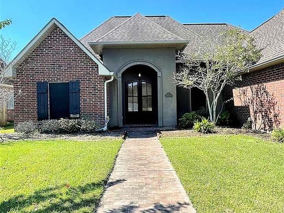 Ready to entertain on the covered brick patio and watch the sunset over the lake? This Southern French Style Home is beautifully located on the water in Spring Lake Subdivision! Some of its features include 3 bedrooms and 2 baths with varied ceiling heights throughout, granite countertops in the kitchen, wood floors in the main living areas, wood laminate floors in the bedrooms, tile in all wet areas, custom stained cabinetry in kitchen and built-ins in the living room, crown molding, surround sound, large primary suite/bath with his/hers closets and separate vanities, 35 year roof (17 years old) and so much more! Never flooded.