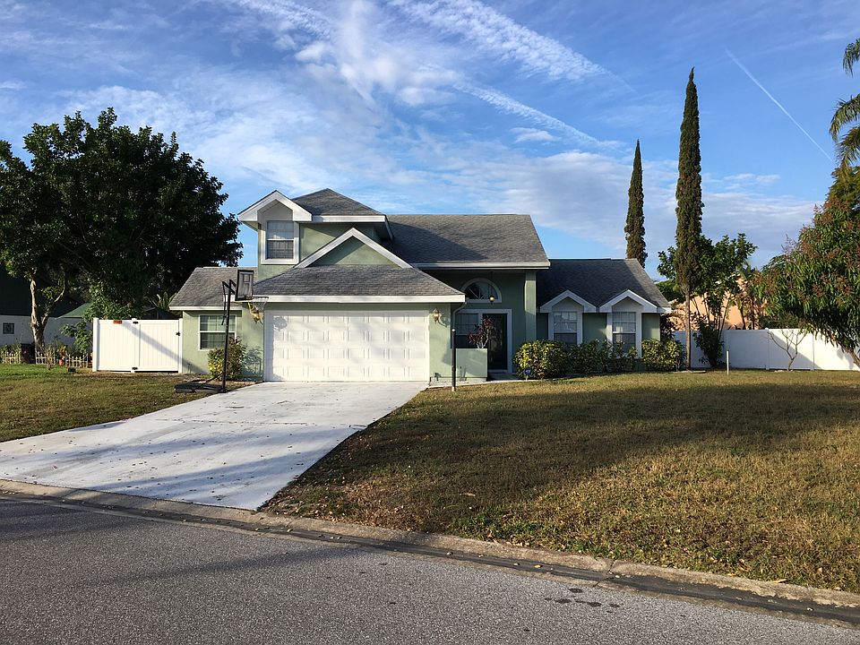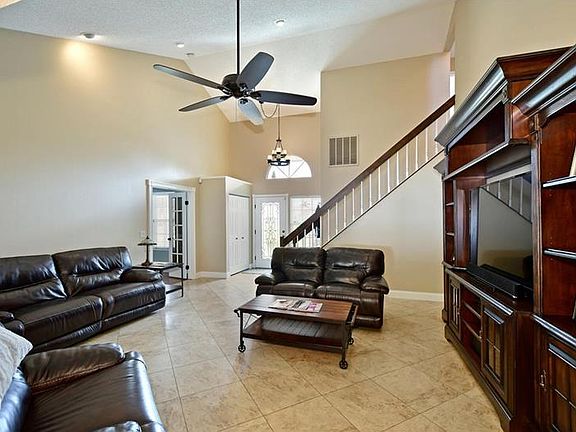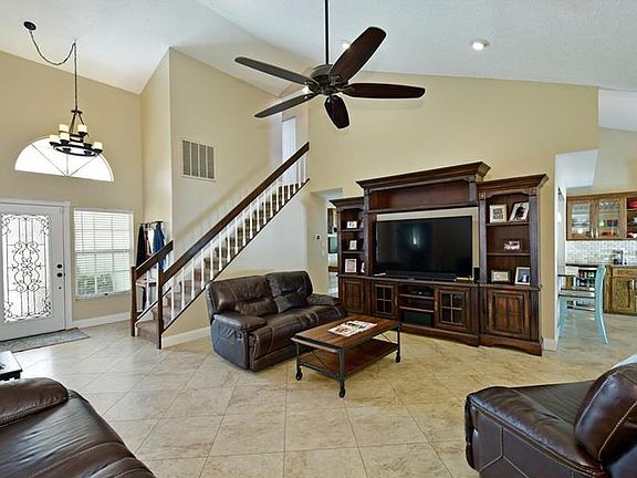 This lovely 3 Bedroom 3 Bath home with a Study/Bonus Room and Swimming Pool is loaded with amenities! The beautiful leaded glass entry door welcomes you into the main living area and an open floor plan showcasing a 20' vaulted ceiling over the family room creating a wonderful open atmosphere. This kitchen offers a beverage frig plumbed for an ice-maker,warming drawer,granite countertops,extensive handmade wood cabinetry,tile backsplash,breakfast bar,sit-down desk,S/S appliances, & French doors with built in blinds leading to the outdoor pool area from the Breakfast Nook.The Master Suite is located on the 1st level and has a walk-in closet,updated bathroom with seamless shower doors & a double vanity.The 2nd and 3rd bedrooms are on the 2nd floor. The 3rd updated bathroom,accessible to the pool has a rain shower. Additional interior amenities include 24 x 24 tile on the diagonal,alarm,canister lighting ceiling fans,water softener,recessing sliders,bonus room built-in bench storage and newer windows. Exterior features include a PVC privacy fence on a corner lot,artesian well, Mango tree,double garage,saltwater pavered pool remarcited in 2010 with cascading rock waterfall, a 2015 pump & 2015 salt water generator. A concrete pad provides storage room for your boat.2008 A/C, 2008 roof and 2016 hot water heater. Enjoy the convenience and close proximity of schools, shopping, dining, hospitals, churches and transportation. Non-deed restricted w/no HOA fees. This home is warm and inviting and fantastic!