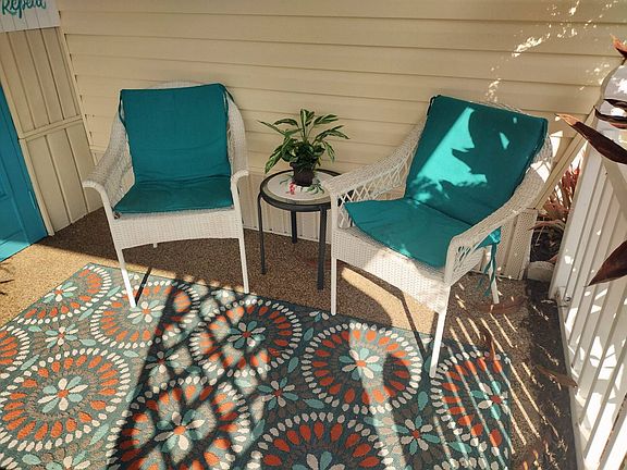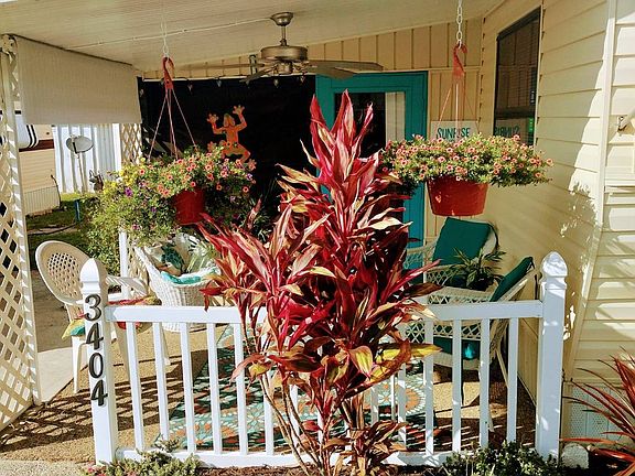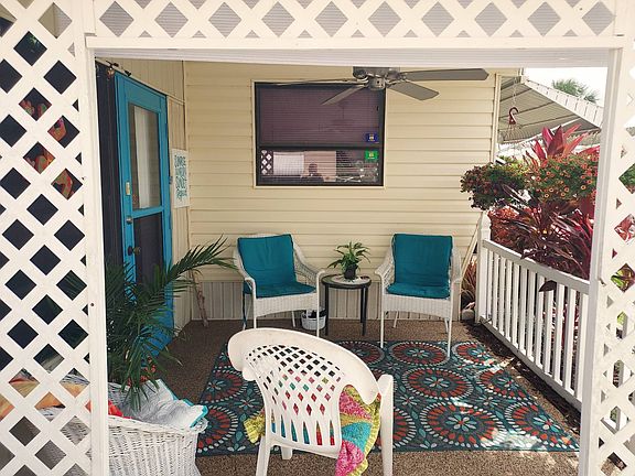 1989 one bedroom, one bath, with Florida room. Fresh paint and updated furniture and decorations. Laundry room with washer and dryer, work shop, and enclosed outdoor storage shed. New laminate floor, new water heater, and solar shades. Front porch seating and private seating in the back yard. Updated landscaping and AMS roof.