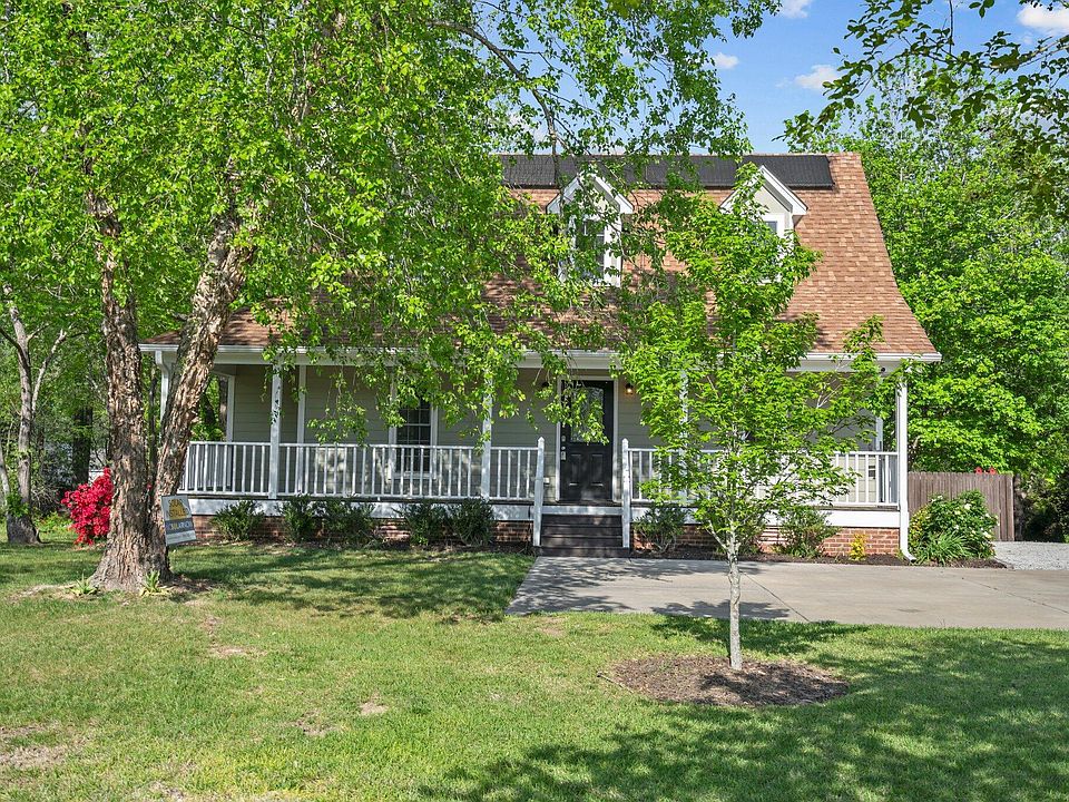 Enjoy a ''staycation'' at home this Summer with your very own heated in-ground pool or sip some tea on the charming rocking chair front porch! .69 acres, rear deck, storage sheds, pool house & fenced yard too! Move-in ready home features main fl primary suite w/hardwood flooring. Light/bright kitchen has granite & stainless appliances. 2nd fl boasts 2 spacious secondary bedrooms & another full bath. Whole house battery backup. Convenient to I-540, 401 & downtown Raleigh!