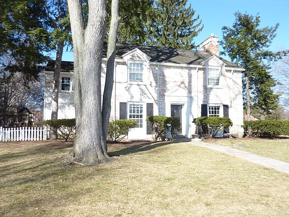 Exceptional curb appeal! White washed center hall colonial 2 Story with picket fence. Classic details, crown molding, built-in bookshelves + Corner Cupboard. Richly paneled den with F/P plus upper office! Wonderful Summer Porch for entertaining overlooks private mature grounds. Finished lower level. Newer high eff furnace 2010 & central air, 50 gal HWT 2013.