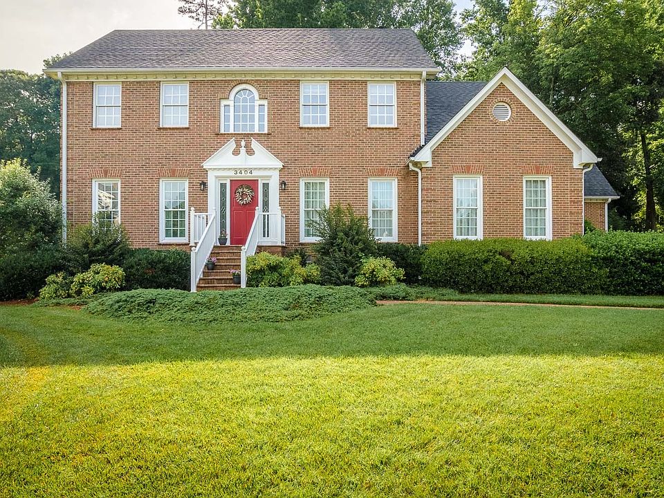 Brick, well maintained Beautiful Sedgefield Home. Roof in 2011. Hardwoods on main level. New carpet & Neutral paint. Renovated Kitchen w/custom cabinetry, SS appliances, granite, custom tiled back splash, large center island, pantry open to Fireside Den. Main level Mstr Retreat w/En Suite bath, WI closet. Upstairs w/addtl 2'nd Mstr, En Suite Bath. 2 Addtl beds w/Jack & Jill Bath. Lrg Bonus Room. .52 Acre Lot professionally landscaped. Huge newly refinished deck perfect for BBQ's. Deck, Paved Drive, Porch, Sprinkler System; Ceiling Fan(s), Dead Bolt(s), Dryer Connection, Garage Door Opener(s), Gas Logs, Jetted Tub, Laundry Room - Main Level, Pantry, Separate Shower, Smoke Alarm, Solid Surface Counter, Washer Connection, Built-in Microwave, Dishwasher, Slide-In Oven/Range. Cable, Carpet, Tile, Vinyl, Wood.