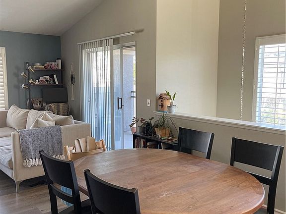 End Unit in a Great Location! This upgraded end unit has everything you're looking for. It features laminate flooring and plantation shutters that give the space a clean, modern look. The living room is bright and spacious with vaulted ceilings, a stylish two-sided glass fireplace, and a cozy balcony, perfect for morning coffee or relaxing after work. The primary bedroom also has high ceilings, its own private balcony, plenty of space for a king bed, and a big walk-in closet. You'll also have a two-car garage and be just a short walk from both community pools. This one is move-in ready and easy to love!