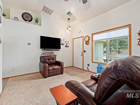 Meticulously maintained home on a quiet cul-de-sac with a sought after split bedroom floor plan. Vaulted ceilings make the living space feel open and welcoming. New carpet throughout. Kitchen boasts all stainless steel appliances and updated faux wood laminate flooring. Backyard pergola stays! Bring all your toys with RV parking and shed in the backyard! Easy freeway access and very close to both downtown Nampa and Garrity shopping centers. Your furry companions will also love the dog park nearby!