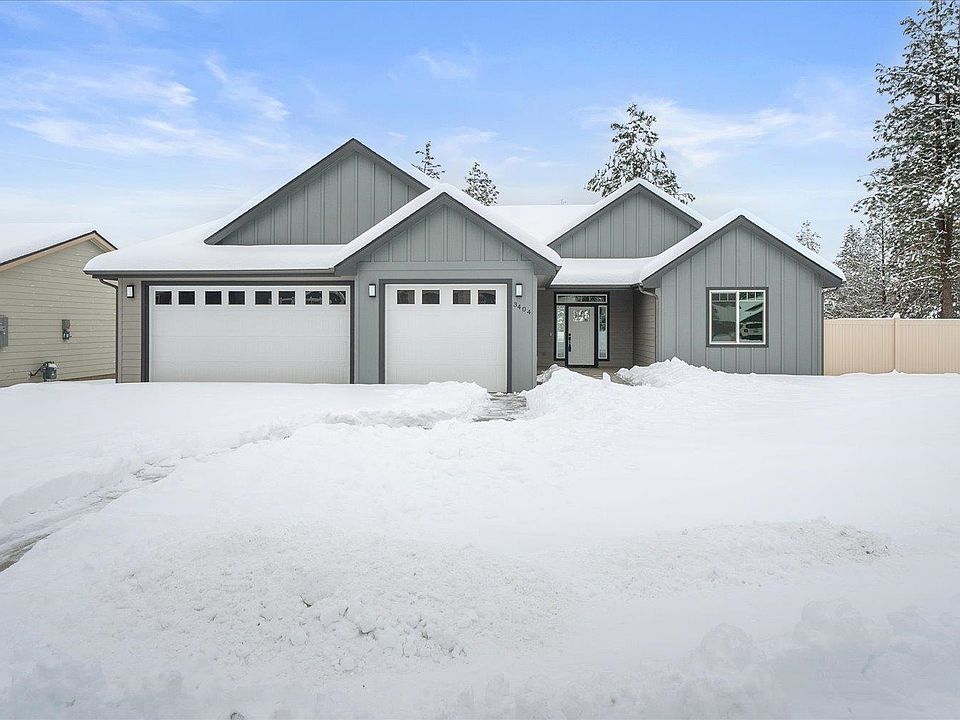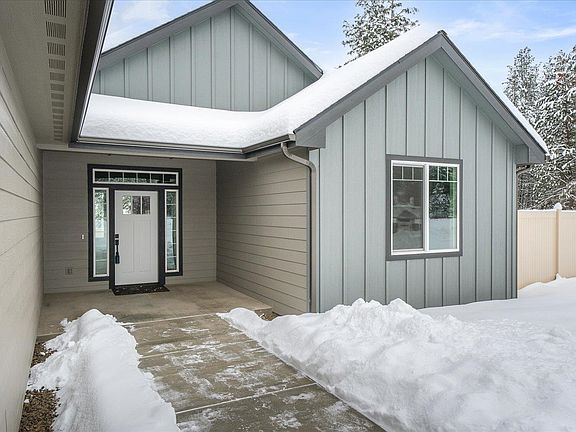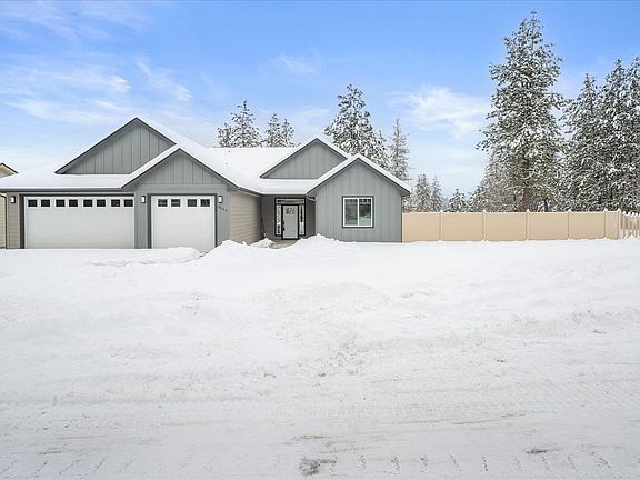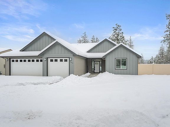 New neighborhood, no step entry ranch style home with a super covered back deck. Landscape in that includes perm. curbing and sprinkler system also fully vinyl fenced yard. Whitworth water and Avista for electric and natural gas. 4 bedrooms, 3 baths! Gas fireplace, gas heat pump with AC. Home is wired and ready for generator. Quartz counters , beautiful kitchen, great room concept design with 10 foot ceilings. Room for a shop with it's own driveway access. open house this weekend 1-3pm Saturday and Sunday December 11 and 12
