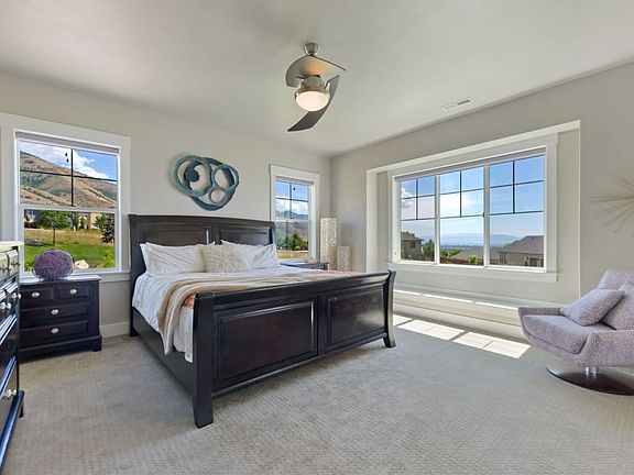 Built in 2016 this gorgeous home has 360 degree views of Cache Valley in a coveted North Logan neighborhood. The yard features a massive patio, pergola, fire table, fire pit and two in ground trampolines. The kitchen features a large island, custom cabinets, quartz counter tops, two sinks, and stainless steel appliances. The master sits on the main floor with large window view of the valley, huge walk in closet, oversized tub, and large two person shower.