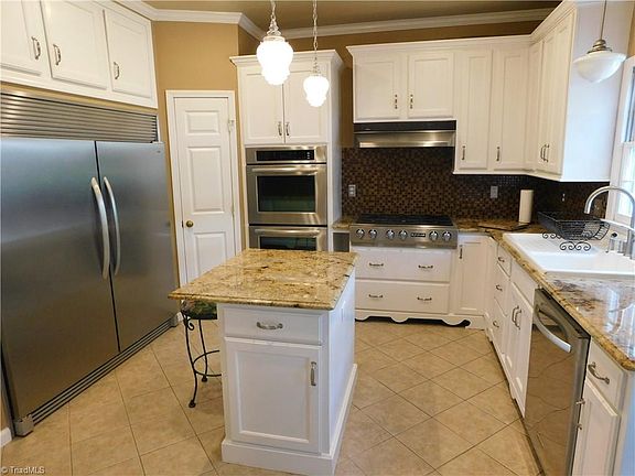 Highly desirable 3 bedroom and 3 full bath townhome in established Caldwell Square. Updates include lovely wood flooring thoughout the main, new high end carpet upstairs, and fresh paint. Amazing cooks kitchen with 6 burner Jenn-Air cooktop, duel Kitchen Aid ovens, and large capacity refrigerator. Granite countertops, new cabinets, pantry, canned lighting, and tiled floor. Formal dining room with wet bar. Den with fireplace could be used as primary bed/guest room with full bath and walk in shower on main level. Large upstairs primary suite has sitting area, 3 double closets, and bath with stand alone shower. 2 additional bedrooms with large closets as well. 3rd bathroom has tub and double vanities. Tons of storage throughout the home. Private courtyard/patio with pierced brick wall and pegoda. Lovely covered front porch. Covenient to Friendly Center and Bog Garden, and Bicentennial Gardens. Welcome home to the quiet and pleasant community! Agent related to seller.