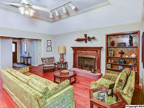 - Features: Ceiling Fan(s), Crown Molding, Fireplace, Tray Ceiling(s), Wood Floor