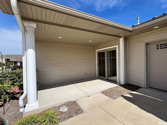 Warm & welcoming with tall ceilings, neutral colors & tasteful white trim throughout. This unit has been meticulously maintained with the interior freshly painted & new carpet installed on 9/16. Two bedrooms & two full baths, plus a den (could be used as a BR, but no closet). Gorgeous hardwood floor in the spacious, open living room. Builder upgraded cabinetry in the baths & kitchen, plus granite countertops in the kitchen and breakfast bar. Space in extra long garage to add shelving options for additional storage & a lovely covered back porch for relaxing. Nestled just across from both the pond & clubhouse--the clubhouse features space to entertain, a library, gym, game room, bocce ball & community garden and hosts several activities (book club, monthly potlucks, monthly happy hour, card groups, etc.) Square footage believed to be accurate, but is not warranted.