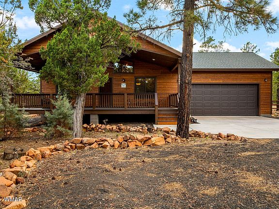 An attached garage adds convenience & storage space. Relax on the front deck & let the sound of the wind whispering through the pines soothe your soul. This is mountain living!