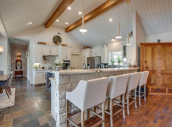 Richly appointed with over 150K in recent updates in this 1 story spectacular ranch home with sparkling saltwater pool, spa, fire pit, huge screened in patio, a 2 stall renovated barn with new windows, tack room & hay loft all nestled on over 2 acres. Wood and slate flooring thru most of home. Kitchen with granite, SSA, stainless vent hood, wine cooler, double convection ovens & abundance of cabinets and glass mosaic backsplash. 3 living area plus a home gym. Living and den separated by floor to ceiling Austin stone fireplace. Living 3 with pocket doors has been converted into a media room with wet bar and access to patio. 2 masters. Owner's retreat with garden tub, sep oversized shower with body jets. See list