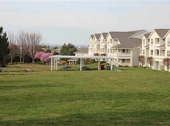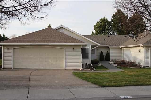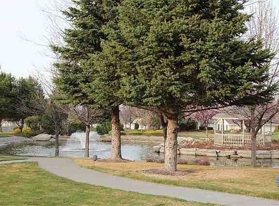 Beautiful campus with walking trails ponds and waterfalls, Carefree lifestyle, no need to worry about yard maintenance this summer! Roof, siding, lawn, snow removal, irrigation water, fire/hazard is included in HOA fee. 2 BR plus den, open dining/living room with vaulted ceilings. Spacious master with walk-in shower and walk-in closet. 3' wide doorways through-out. 2-car garage with built-in storage and work-bench. Just a short stroll to the community club with indoor pool, activities. Adult Community