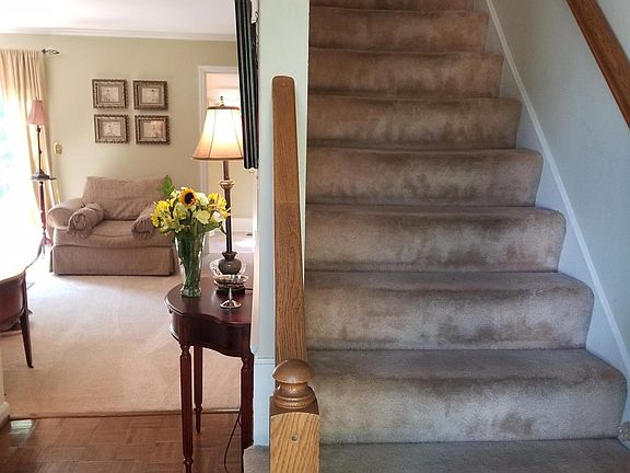 2-story brick home with charm and extra's in desirable Squire Oak subdivision. The home features walk-out basement, 3 bedrooms, 2.5 baths, large eat-in kitchen, formal dining room, family room, home office and den. New carpet just installed in living room. Excellent yard with rear deck and patio. Mature trees, great curb appeal. Squire Oak has charming private wooded park with creek in the middle of the subdivision.