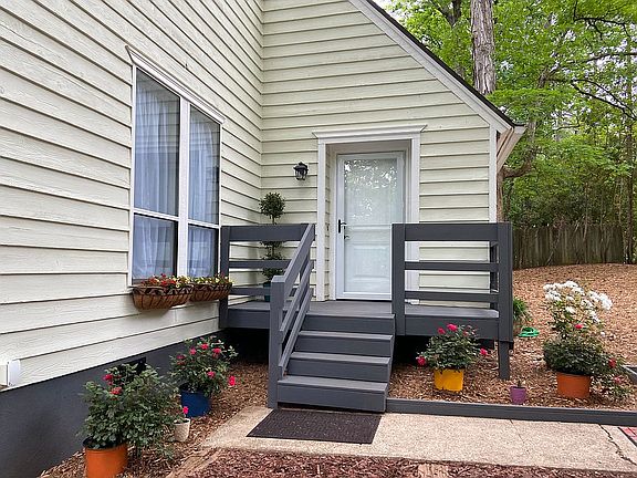 Lovely move-in ready home in excellent central location. Renovated and upgraded throughout: from all new lighting, all new doors, fixtures, flooring, and fresh paint, to new insulation, vapor barrier and automatic foundation vents in the lighted, walk-in crawl space. New front load washer and dryer convey, stainless steel refrigerator and water cooler as well are included with all home appliances. Surrounded by lush mature trees to enjoy nature and escape in the quite back yard, flowers beds for gardening, plenty of space to barbecue and entertain on your large double decks. Or opt to stay inside enjoying the view from your cozy indoor wood burning fireplace. One and a half story means vaulted ceiling in living-family room area. Downstairs are two comfortable bedrooms and a full bath, with the large master bedroom and bathroom upstairs. Plenty extra storage with an ample walk-in attic storage space upstairs, additional attached storage area from outdoors, and also conveying is a medium storage shed. Great location! Large corner lot, centrally located inside the beltline. Desirable, safe and caring neighborhood; walk to Lake Johnson Park, Kentwood Park, NCSU Wolfline bus stops, Kaplan Drive Park, and the best elementary magnet school-AB Combs. Located only minutes from downtown Raleigh, very close to Cary, with Durham/RTP just a short drive, and Wake Forest and Clayton less than a half hour away. Don’t miss this opportunity to live in a perfect central location, in a move-in ready home surrounded by caring and delightful neighbors.