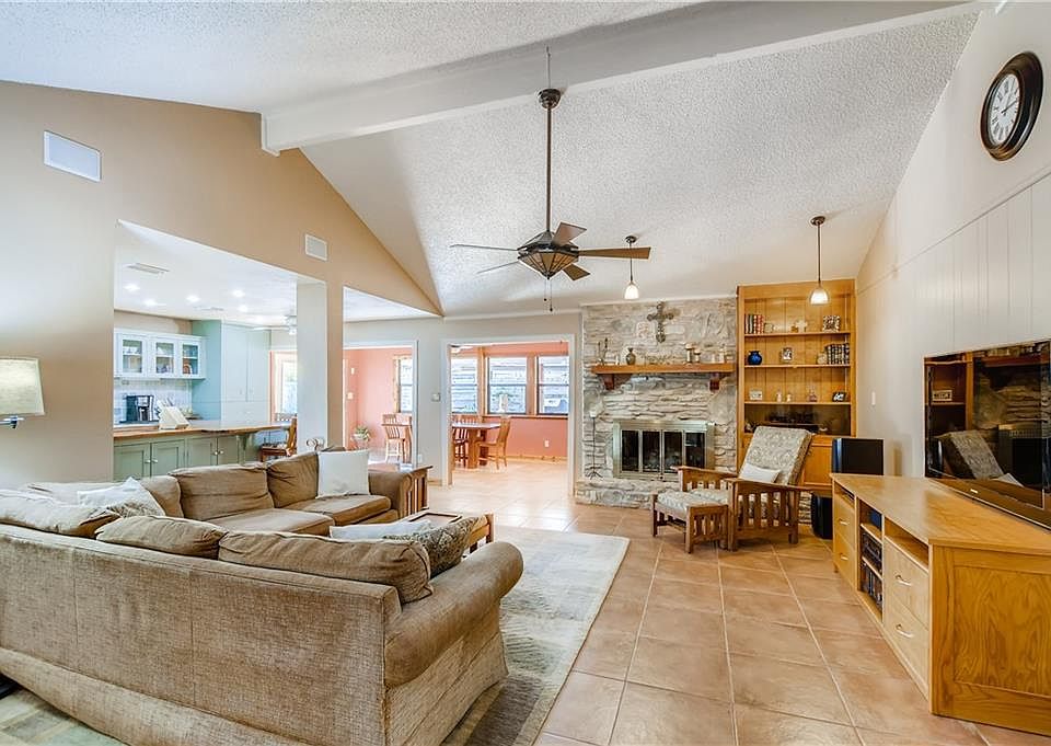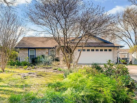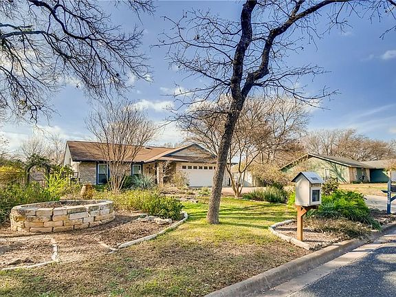 This charming 3/2 ranch style home on a .32 acre lot in close-in Cedar Park has many beautiful updates! Extensive tile floors, delightful Chef's kitchen with polished concrete counters, custom cabinets with glass upper doors, and large walnut-topped island at the kitchen breakfast bar. Recessed lighting, half of the windows replaced with vinyl clad double pane; large family room with stone wood-burning fireplace and raised hearth & solar tube; tiled formal dining with vaulted ceiling and exposed beams opens to vaulted family room and kitchen. Dining has rough cedar window trims & atrium door leading to the delightful pond, waterfall and deck, and views to the back to the covered stone patio. Greenhouse and five rainwater barrels convey. Multiple landscape beds (each with drip irrigation) add to the exterior appeal. Hardie-panel done in 2010, full gutters, electrical panel replaced +/- 2014; roof shingles +/-2014, HVAC in 2019, hot water heater in 2018. A real prize!