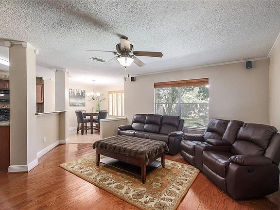 Adorable home close-in to schools, shopping, I-35 and community lake park and trail. Three-sides brick home with an abundance of trees, offers a shady reprieve from the Texas sun. Beautiful hardwood floors through main living areas and bedrooms and tile in wet areas. Open concept kitchen, with granite counters and updated backsplash. Backyard oasis with covered back patio overlooks the extended stone patio, huge oak trees and the extra storage shed. Perfect for relaxing or entertaining.