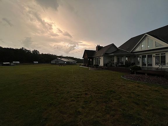 You'll feel the stress melt away as you meander up your driveway while enjoying the views of 47 acres of privacy. An incredible floor plan awaits you within this open concept ranch. High end finishes abound with an abundance of amenities. The perfect positioning of the house allows for an overflow of natural light. Gourmet kitchen with quartz counters, 4 fireplaces, soaring great room, master suite with dual closets, formal dining room. Relax on the screened in porch with its own fireplace. Beautiful low maintenance material deck with pool. Huge heated outbuilding with bath/rec area. Bring all your toys. Enjoy the serenity of the pond. Direct access to snowmobile trails. Nature greets you at every turn. 30 minute commute to Milwaukee
