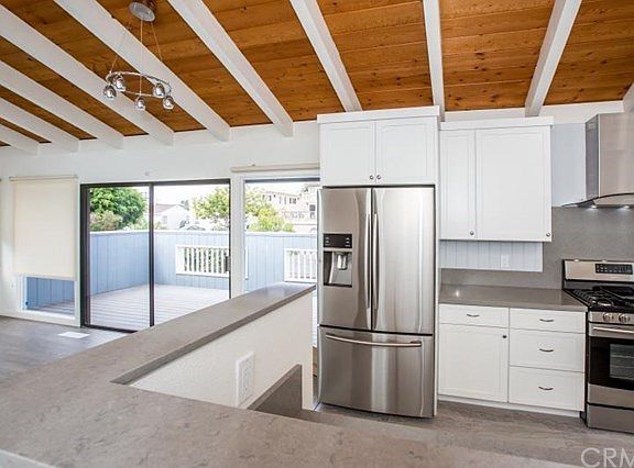 Located in the heart of the New Lantern District gateway, this fully remodeled 3BR, 2 BA front duplex unit couples beach city living with all the finishes one would expect in a model home. Italian porcelain tiles and distressed laminate wood floors, new carpeting and poplar staircase open to luxurious kitchen with brand new, top of the line Samsung stainless steel refrigerator/gas range/designer hood, Bosch dishwasher, sink basin and commercial grade faucet. Custom, handcrafted soft close cabinets and bead board splashing surrounded by Pebble tone Sila stone counters provide ample storage and work space. Two full baths have been done to the same high quality as the kitchen. 2 upstairs bedrooms open to a huge open concept living area with fireplace, dining area and deck perfect for grilling and taking in the ocean breeze. Huge downstairs master and separate bath opens to foyer, large laundry room loaded with brand new high efficiency Samsung washer/dryer and cabinets/linen closets. Two car garage and over-sized driveway overlook environmentally friendly landscape and year round colorscape. Walk to Starbucks, grab dinner at Jack's or take a stroll to the beautiful harbor viewpoint only two blocks away. Move-in and start living the beach life!