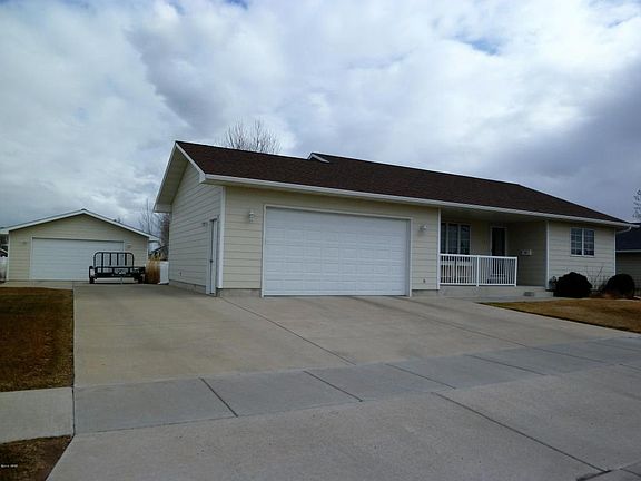 Beautiful 2600+ SF home in Skyline includes 4 beds, 3 baths & two heated 2 car garages. Open floor plan features a kitchen w/ granite countertops & large breakfast bar, electric fireplace in living room, master bedroom has a master bath, walk-in closet & door to deck, large family room in basement w/ double egress windows & HE furnace. Fenced backyard has sprinkler system and large patio.