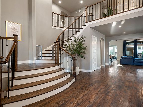 Welcome to this extraordinary residence within the prestigious master-planned community of Light Farms. Perfectly situated on a coveted corner lot, this home offers a refined blend of timeless elegance, modern functionality, and resort-style living. The open-concept design seamlessly unites the chef’s kitchen, grand living room, and both dining areas, creating an inviting atmosphere for both entertaining and daily living. Expansive sliding glass doors flood the interiors with natural light while framing captivating views of the backyard retreat. The primary suite boasts dual closets—one suited for conversion into a private fitness studio—while a versatile downstairs room currently serves as a gym but easily transforms into a media lounge, schoolroom, or creative studio. Upstairs, a second media or game room and a generous bonus suite offer endless possibilities, including use as a sixth bedroom. A refined elevated study overlooking the dramatic foyer enhances the home’s grandeur, while bespoke built-ins by California Closets elevate both design and utility. The backyard is a true entertainer’s paradise, featuring a sparkling pool (completed in Oct. 2024) and spa, a covered structure with a mesmerizing rain sheer water feature, a fully turfed yard with putting green, a built-in grill, and an expansive covered patio for year-round enjoyment. A dedicated pool bath and secure child-safety gate add convenience and peace of mind. Life in Light Farms is second to none, offering multiple pools, tennis and pickleball courts, a state-of-the-art fitness center, sprawling parks and playgrounds, miles of hike and bike trails, an on-site elementary school, and a vibrant calendar of community events. This exceptional property harmonizes luxury and lifestyle in one of North Texas’ most desirable communities.