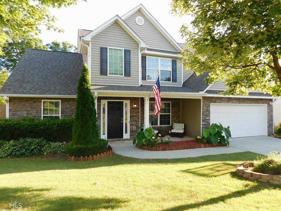Look no further! Beautiful traditional two-story home in swim/tennis subdivision. Two story foyer leads to open flow throughout the home. Master on main floor plan, trey ceilings, double vanity, and separate tub shower highlight master wing. Natural light abounds through two story family room adjoined by formal dining and large kitchen. Second level feature three bedrooms all with walk in closets and two walk in over size storage areas. New solid surface flooring covers all of main level of home leading out to the private, level, tree lined, fenced yard. Two large patios, hot tub, are fleeced by fantastic gazebo and huge fire pit! This back yard haven is enhanced by the 10 acres of protected green space. One of a kind home, minutes to I 85 and 316.