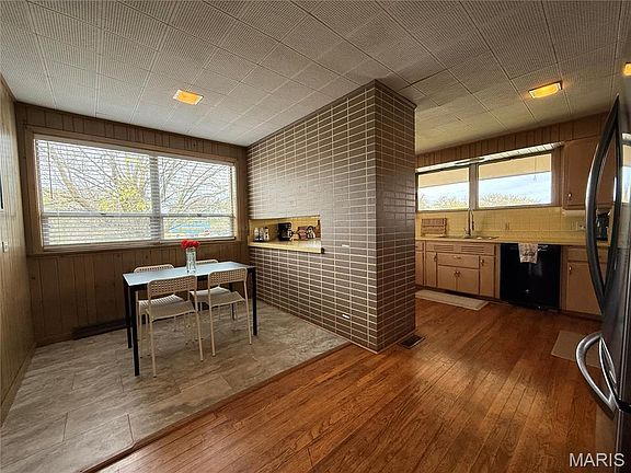 Large foyer leads you to a large living room featuring wood burning fireplace and center glass wall. Formal dining room with original built in china display case. The kitchen has modern appliances as well as the original mid-century appliances for that nostalgic look.