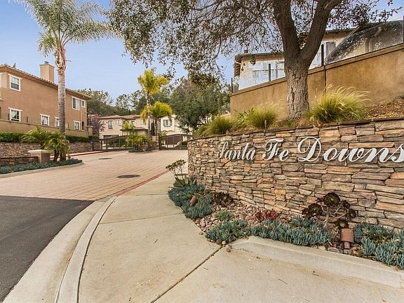 Surround yourself with contemporary elegance throughout this amazing cul-de-sac home nestled in the private Santa Fe Downs gated community. Step through the front door and be greeted by a dramatic formal entryway with tile flooring, art nook, high ceilings, grand spiral staircase, and an amazingly open floor plan with abundant natural light. Adjacent cozy great room with a dual-sided gas fireplace connects to a sunny and spacious dining area. Beautiful glass French doors in both dining area and living room open up to multiple covered patio and seating areas, perfect for outdoor dining, entertaining, or lazy lounging. Look out from the patio area over the world-renowned Del Mar Horse Park, San Dieguito Lagoon, fairgrounds, followed by peek Pacific Ocean view! Custom designer kitchen features gorgeous stainless steel appliances, dual wall ovens, large double door fridge, dishwasher, triple compartment sink with pull out sprayer hose, and a huge center kitchen dining island with granite countertops and gas cooktop. Kitchen opens directly to Family Room with smooth plank flooring, built in wall cabinetry, and dual sided gas fireplace. On the other side of the fireplace you'll find a warm and sunny room with tile flooring and massive glass French doors which lead out to another outdoor seating area. Makes for a great personal office or hobby room. Ground floor bedroom suite features plank flooring, with full bathroom, glass-door tiled shower, vanity, and a great walk-in closet. At the top of the dramatic spiral staircase is a game or theater room with built in wall cabinetry, and access to outdoor veranda overlooking the lagoon. Second floor features two additional bedrooms, two full bathrooms, and laundry chute directly connected to the ground floor laundry room with washer and dryer. Stylish and spacious master suite on second level has beautiful master bath with deep soaking tub, glass-door shower, and connects to a massive walk-in closet with built in storage cabinetry, followed by a separate personal fitness or yoga room with access to outdoor veranda. This gorgeous home will go FAST! Please call to inquire. Due to Covid-19, in-person tours will be restricted but virtual tours or link to video tour will be available.