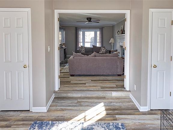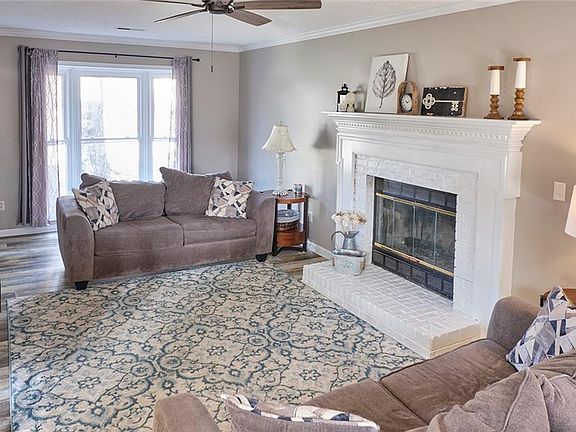 Great curb appeal, well maintained, updates that will appeal to buyers and shows beautifully. When pulling up in front of the property, you are greeted with new vinyl siding (2021). Opening the front door, there is new vinyl plank flooring (2022) and windows (2021). Living room, with a wood burning fireplace, opens into a light filled sunroom. SS appliances appliances and solid surface countertops in kitchen with a breakfast bar along with a 10 x 9 breakfast area. The dining room has one wall that has built-ins - great space for dining supplies or great space for a home office. The AC was replaced in 2018. Fenced backyard, a 24' x 14' patio along with a firepit at the back of the yard. Walking trail, playground, and pond with fishing dock just steps away.