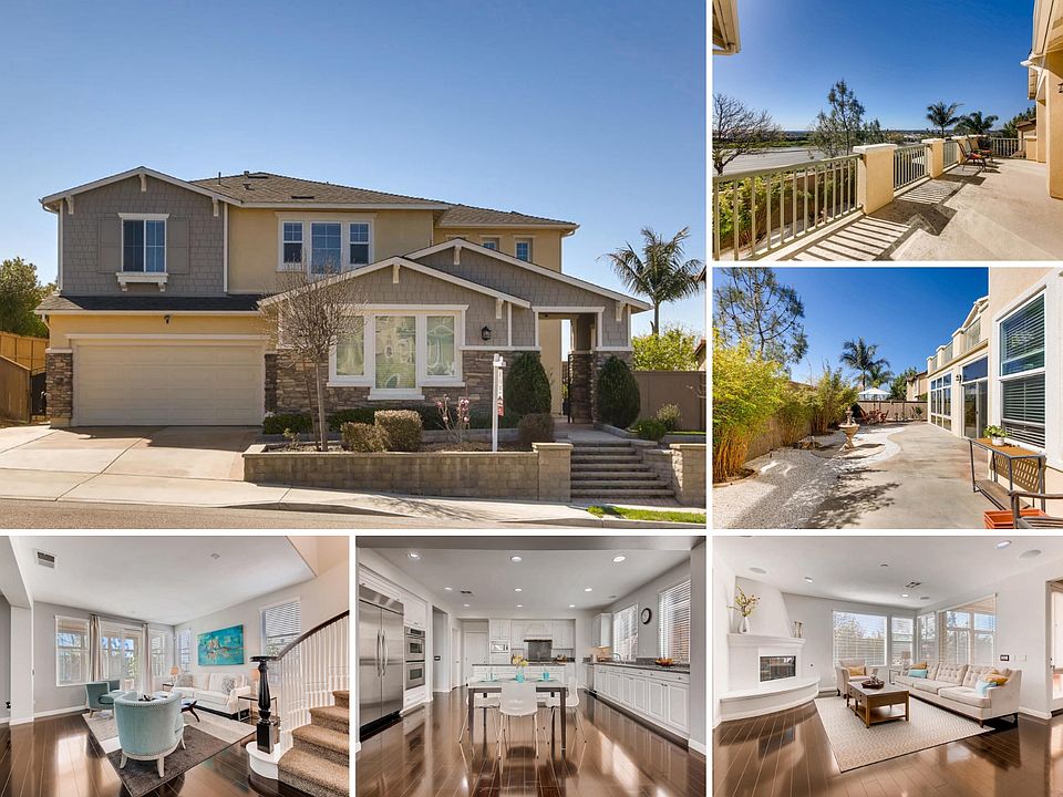 Gorgeous luxury home in the desirable La Costa Oaks community featuring an entry level bedroom/bath + 4 upstairs bedrooms including the large master with huge bath and expansive view balcony that runs nearly the full length of the home! Exceptional upgrades include: beautiful espresso wood flooring, home theater surround sound, stunning gourmet kitchen and separate dining/living rooms with direct access to the light-filled California sun room! Equipped with 5.8K SOLAR and 3 car garage with electric vehicle supercharging system! A MUST SEE!