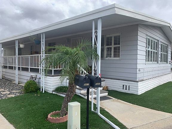 Welcome to Rancho Carlsbad, a gated community of 504 homes where you own your own land. This 2 bedroom, 2 bath home is located on a corner lot with guest parking next to the lot. Low maintenance artificial turf in the front and back yards give you plenty of time to direct your interests to the pool, Card Room, Garden Club, library, gym and over 45 other clubs and committees. The large covered side porch opens to the spacious living room and dining room with built in buffet. Open the plantation shutters found on all windows throughout the home and catch a glimpse of the ducks across the street playing in the large creek. Kitchen storage is abundant!