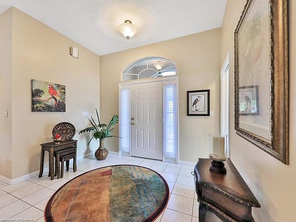 This gorgeous 3 bedroom 3 bathroom home with den/study, overlooking the 18th hole of the challenging Steve Smyers designed golf course has been meticulously maintained by the current owner. The screened porch off the living room and dinette area was enclosed under air in 2017 and has hurricane strength glass windows and offers a panoramic view over the golf course. The flooring is tile, wood and wood laminate. The home comes fully furnished, with the exception of some personal items and it is truly a turn key property. The roof was replaced in 2014 and the a/c in 2017 with an excellent transferable warranty until 2027, new GE refrigerator 2018, solar roof fan 2013 as well as a transferable termite warranty. There is a private porch with screened top which is home to a hot tub, access is from the dinette area and 3rd bedroom. The spacious white kitchen with corian countertops has plenty of cabinets and the tiled back splash "pops" as does the beautiful stained glass separation. A large 24x22 side entry garage offers plenty of room for cars & golf cart. The property is competitively priced - it is beautiful - call your agent to make an appointment.