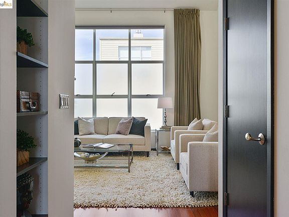Helen34 is an intimate 12 unit loft project designed by Verdigris, a Sausalito architecture firm. The modern units are centered on a courtyard and shared dog run that encourage social interaction. Loft #6 is a top floor, corner unit with double height ceilings in the entry and living area. It gets tremendous light from oversized windows and a skylight. It is a split level unit with the bedroom and walk-in closet on the upper level and bathroom, office area, living room, kitchen and laundry room on the lower level. Features include Brazilian cherry hardwood floors, a gas burning fireplace, stone counter tops in kitchen and bathroom, stainless appliances with gas range, laundry close with washer & dryer, 15.5' ceilings in living & entry, aluminum framed windows, built-out walk-in closet, fabricated plate metal staircase, skylight and custom lighting. Emeryville is just a block away & San Francisco is an 8 mile drive. WalkScore of 80 and BikeScore of 91. Price reduced!