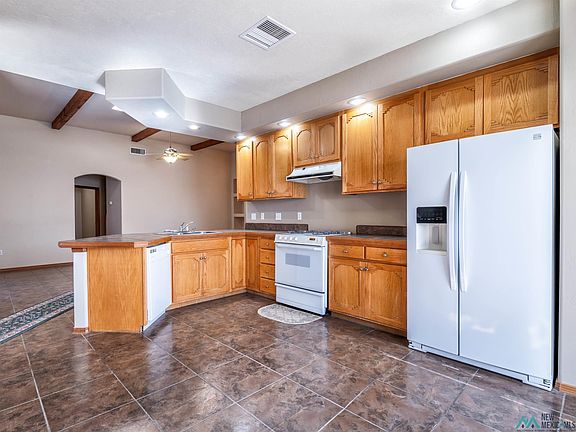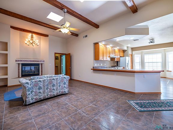 This well maintained property is nestled in a picturesque 50+ community adorned with palm trees and classic southwestern architecture on a quiet road with easy access to nearby modern retail conveniences. Property highlights include elegant design with pristine white stucco and open, inviting spaces that fill with natural light. The property has a charming courtyard entrance leading to a spacious living room with an open plan kitchen. Comfortable living areas include 2 bedrooms, 2 bathrooms, a large dining room, and a well-appointed kitchen. There is an attached two-car garage. Part of the garage or the outbuilding in the back yard could function as workshop or studio space. This home is a single level property with approximately 36 inch wide doors and ramps for accessibility Deming, New Mexico, with a population of about 14,000 is a charming city with a rich history, breathtaking natural attractions, and a strong sense of heritage. Come unplug and unwind in a tranquil and affordable environment with a relaxed lifestyle. Deming is approximately 4 hour drive from Tucson, 1 hour drive from Las Cruces, and 1.5 hour drive from El Paso.