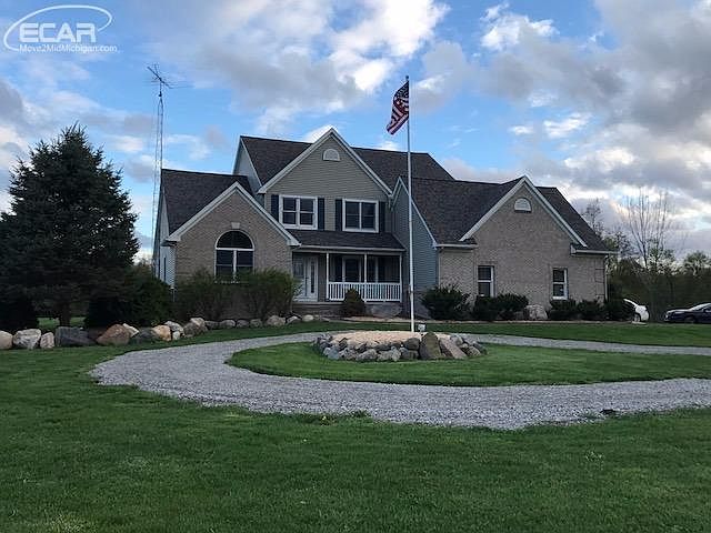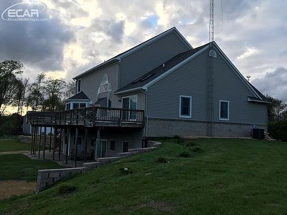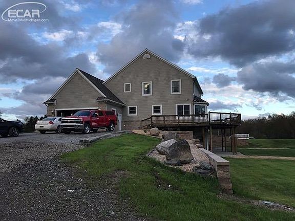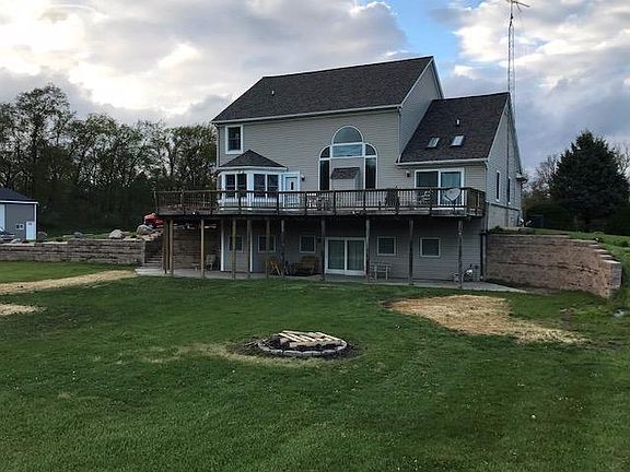 All Your Dreams Have Come True... This Is Everything You're Looking For + So Much More! Sprawling 2-story that is nestled on a secluded 10+ acres & amazing views from every window. 4 Bedrooms, luxurious master suite & grand foyer w/ chandelier. Soaring cathedral ceilings, open staircase, balcony overlooking fire-lit living room & beautiful hickory flooring throughout. Gorgeous kitchen w/ white cabinets, granite counters & island. Eat-in dining area w/ large windows that overlook the backyard & deck. Finished walk-out basement with 10' ceilings, 2nd kitchen, living room area & bathroom - perfect for a man cave. 2 Car attached garage, 2 pole barns - one barn is 34x54, heated, 13' doors and other 26x36. Over 2 wooded acres - great for hunting! A must see!!