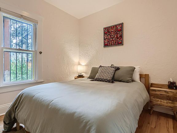Both bedrooms come furnished with queen beds and clothing storage, the living room is furnished with a welcoming couch with gas fireplace and over mantle TV with Roku. The bathroom comes complete with rain showerhead and steam shower as well as heated floors. The kitchen, with gas stove comes fully stocked. The basement of the house offers ample storage as well as the full size washer & dryer. Access the oversize fully fenced backyard with maintenance free turf and outdoor dining set. The home is pet friendly, pets to be discussed prior to move in. Tenants agree to once monthly cleaning provided by the owner's housekeeper.