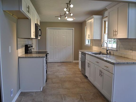Recently renovated ranch with full basement on huge lot! Home has great floor plan for entertaining with vaulted ceilings, exposed beams, floor to ceiling fireplace, AND has been completely renovated. Kitchen now offers white cabinets, granite counter tops, tile back splash, tile floors, new stainless appliances. Bathrooms are fresh and modern with custom tile showers, new vanities, & new fixtures. New carpet throughout and all major systems have been updated. All this and 2 car garage and large private back yard!