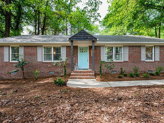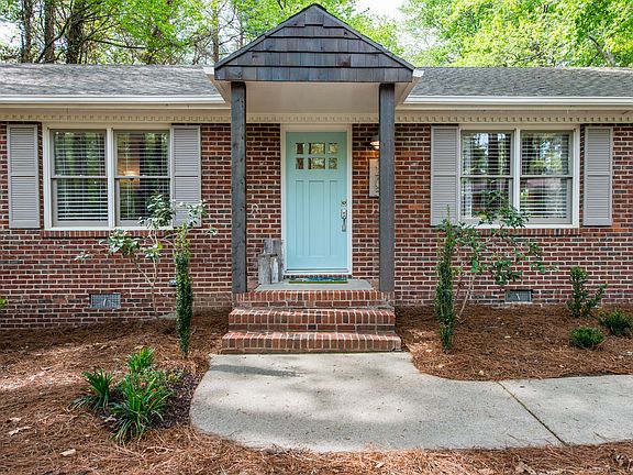 Totally updated ranch w/urban "farmhouse chic" touches throughout on large wooded .47 acre lot in west Raleigh! ALL new SS appliances, white custom wood cabinets, beautiful upgraded granite, farmhouse sink, tile backsplash, real wood -burning masonry fireplace, hardwood style laminates (no carpet), bathrooms feature tile flooring & tub surround, new interior/exterior paint. Deck overlooks large partially-fenced backyard. Short drive to downtown, PNC Arena, I-40, RTP, Umstead State Park. Newer HVAC & roof.