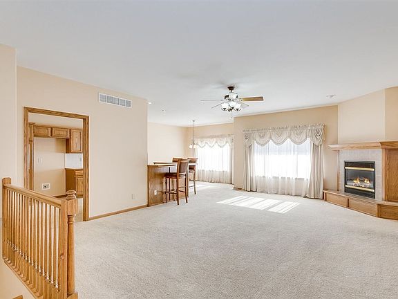 Here it is! Hard to find patio home in Bayside at Ridgeport! Open floor plan, light and bright, and waiting for you to move right in! Thereâs plenty of room for the whole family, and nice sized fenced yard for the dogs. Never worry about mowing again! All the mowing, fertilizing, snow removal (even from your driveway and walks) and trash are included in your HOA dues! The kitchen is well planned and has room to serve many at the bar top counters. The spacious master suite has a trayed ceiling, jetted tub, separate shower, dual sinks and walk in closet. Downstairs in the view-out basement you have ample room to enjoy movies, play a game of pool, or visit with friends at the gorgeous bar (included with the home). If youâre downsizing, or an active family on the go and looking for less work, this is the perfect home! Low specials are almost payed out! Conveniently located and just minutes from K-96 you can be anywhere quick! Call for your showing today!