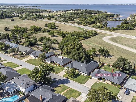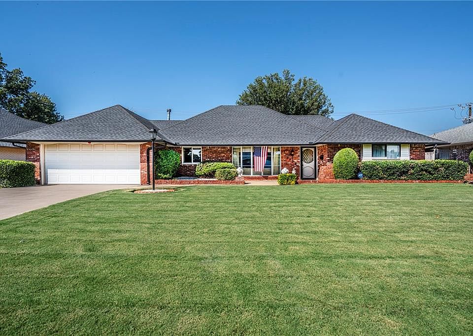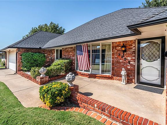 Much desired Edgewater community! Just blocks away from Lake Hefner! Traditional one level Edgewater home with brick fence around the entire backyard! Formal living with large curved window and crown molding. Formal dining with crown molding just off kitchen. Spacious kitchen with plenty of cabinet space, walk-in pantry, breakfast bar and built-in desk. Family room with wood beam ceiling, bookcase, fireplace w/gas logs and door to the patio. Inside utility room with half bath just off kitchen. Large main bed on back of house with 2 closets (1 walk-in), crown molding and full bath with make-up vanity and tub. 2nd and 3rd beds are good size with nice closet space. Hall bath with make-up vanity and tub. Home also features security system, garage door opener and sprinkler. This home is ready for a new owner to come in and make it their own! Central location with easy access to Lake Hefner Parkway, May Ave, Northwest Expressway, shopping and dining. PC Schools! Selling AS IS.