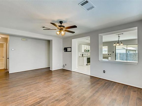 Conveniently located Meadow Lakes subdivision! Living room features Pergo Laminate wood floors & opens to kitchen w/ pass through window. Updated kitchen includes SS appliances, dining area, pantry closet + patio doors to the back yard! Fenced-in back yard + covered patio! Minutes from downtown Round Rock, easy access to schools, dining/shopping! Roof ('19), AC ('19), fresh paint, popcorn ceiling removal, NEW tile floors in bathrooms & kitchen, ceiling fans in Master & 1 BR, faux wood blinds throughout.