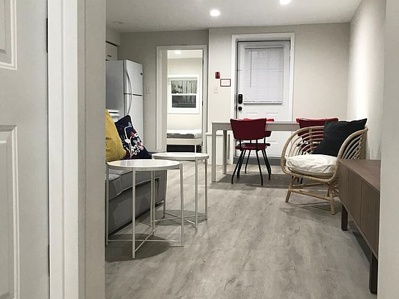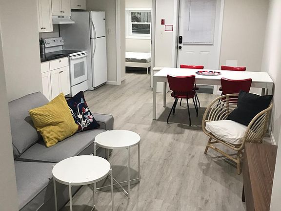 SHORT OR LONG TERM OK(30 day min). FULLY and nicely FURNISHED in prime location two blocks from Georgetown campus. 850 sf 2BR/1 BA, large rooms, COMPLETELY RENOVATED NEW IN 2020. Eat in kitchen, well lit unit, though is partially below grade. Rear patio, window unit A/Cs in each space, one LARGE bedroom with massive closet, under bed storage and fun bonus study loft, 2nd BR much smaller than master but closet has full ELFA organizer and additional storage closet in hall(historically used by the small bedroom occupant) , front and rear electronic entry locks, LVT flooring, responsive/professional management. Shared laundry room w/ two new commercial XL coin operated machines. MINIMUM 720 Credit score required and no more than 45% debt ratio to qualify. Cosigners ok. Summer sublet allowed. Owners are licensed real estate agents (disclosure required by law). Section 8 welcome. No smoking(of any kind). Water, sewer, trash, recycling, gas heat and gas hot water all included. Tenant pays unit personal electric and internet/phone/cable only. $41. Tenant is allowed to sublet for the summer.