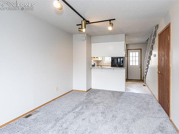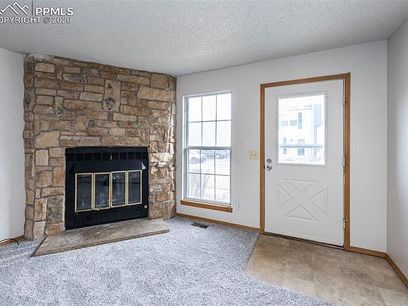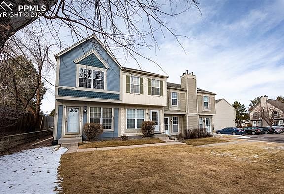 Newly updated with new paint & new carpet. Adorable townhouse located close to Academy Blvd, close to shops & restaurants. Main level has kitchen with all appliances and living room with stone wood burning fireplace. Upper level with 2 spacious bedrooms and a full bath. Partially finished basement has an additional room with private bath that can be used for playroom, workout area or office. Also yard work needed! HOA takes care of all exterior maintenance and the community pool.