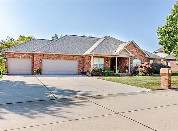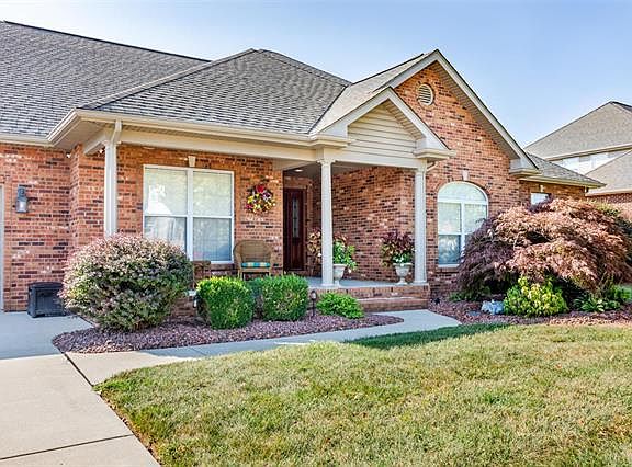 Stunning showcase ranch within desirable Wolf Branch school district! Inviting front porch framing the brick entry cove to this stunning one owner home. Formal landing, vaulted living space, recessed lighting, bonus sunroom & more! Open floor plan flows from living space through to eat in kitchen & sunroom. Spacious living space highlighted by plantation blind picture windows, overlooking beautiful patio & landscaped backyard. Gourmet kitchen with abundance of cabinetry /counterspace, including butterfly peninsula island overlooking living room. Spacious sunroom perfect for relaxing! Main hallway leads to additional two traditional bedrooms, full bathroom & Master bedroom (sized for king bed) with walk in closet, and beautiful en suite. Easy access open staircase to basement off kitchen. Huge unfinished basement with egress window and plumbed for bathroom. 3 car garage, gorgeous curb appeal and back landscape. Main floor laundry room and much more to see here! Schedule a tour today!