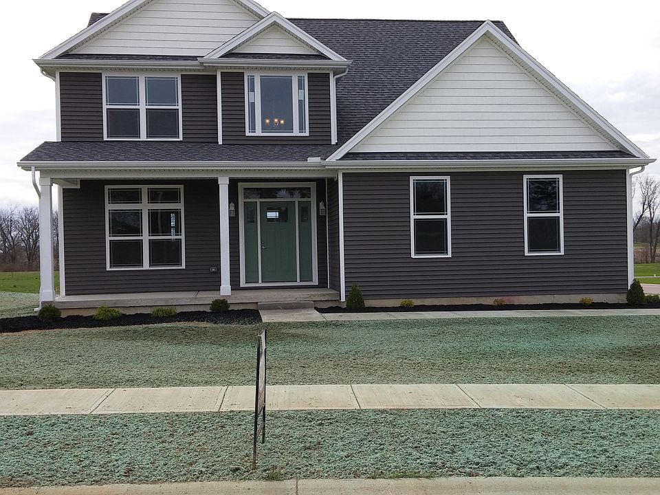 This brand new 2 story Craftsman inspired style home with basement has many quality features such as covered framed patio and porch, Craftsman style front door, engineered hardwood flooring as well as carpet and tile, wide baseboard and trim, solid surface counter tops on a shaker style cabinet, subway tile backsplash, prairie grids in the Simonton brand windows, European frameless style sliding shower door on a solid surface shower, vaulted Master bedroom ceiling, walk-in closets, and many more quality products which you have come to expect from Knisley's Construction and Flooring Center.