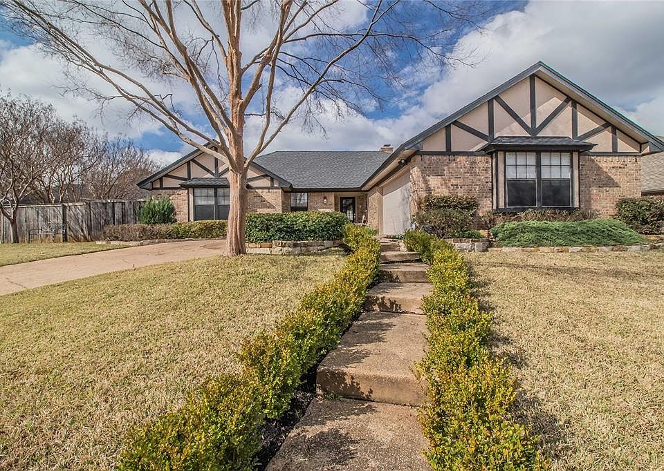 BEAUTIFULLY update home! Stunning kitchen with Quartz counters, Farmhouse sink, stainless steel appliances breakfast bar and a cute breakfast nook. 2 spacious living areas both with vaulted ceilings, Front living has an awesome brick wall with fireplace, brick accents flow into formal dining room. There is a half bath which is spacious and perfect for visitors. Large master suite has barn doors into the bathroom which features a soaking tub, dual vanities and dual closets. New flooring, fresh paint inside and out, all bathrooms updated with quartz counters, new fixtures, new doors, hardware and fixtures throughout. Don't miss the pergola with drop down shades for the afternoon sun.