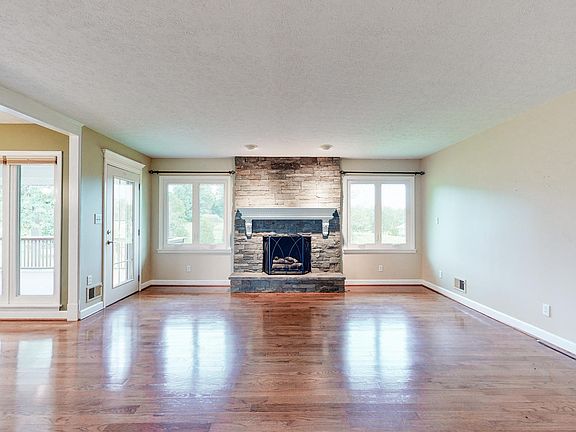 Beautiful ranch with wonderful open flowing floor plan on just under 5 acres. Hardwood floors throughout the majority of the first floor. New carpet installed in the master bedroom and the basement. Gorgeous eat in kitchen with off white painted cabinetry, granite countertops, stainless appliances, and a huge island with vegetable sink. The great room has a gas fireplace flanked by windows that overlook the beautiful acreage. Right off of the great room is a large partially covered deck that has just been repainted and is perfect for a porch swing. The dining room has a columned arched opening and is spacious enough to fit large furniture. Tucked away off of the kitchen you will find an office with a built in desk and overhead cabinets, a charming laundry room, and a powder room right off the laundry. There are also built in cubbies for storage convenience. The master bedroom has a double frayed ceiling, his and hers walk in closets, and a beautiful master bath with double vanity with granite counter, jetted tub, separate shower and private water closet. The other 2 bedrooms are large and share a hall bath. The basement has a large family room, 2 flex rooms the owners used as bedrooms, an exercise room, and another full bath. The 3 car garage is fabulous, and the pull under garage is a bonus, but the out building is the icing on the cake! PLENTY OF STORAGE HERE!!! Don't miss out on this gem of a house. IT WILL GO FAST!!